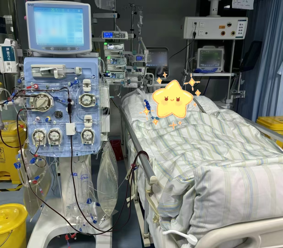 CRRT治療期間,醫(yī)護人員嚴密監(jiān)測患者心率、血壓等生命體征,實時追蹤電解質(zhì)變化及設(shè)備運行參數(shù),通過優(yōu)化治療參數(shù),確保在維持患者血流動力學(xué)穩(wěn)定的前提下實現(xiàn)高效排毒。