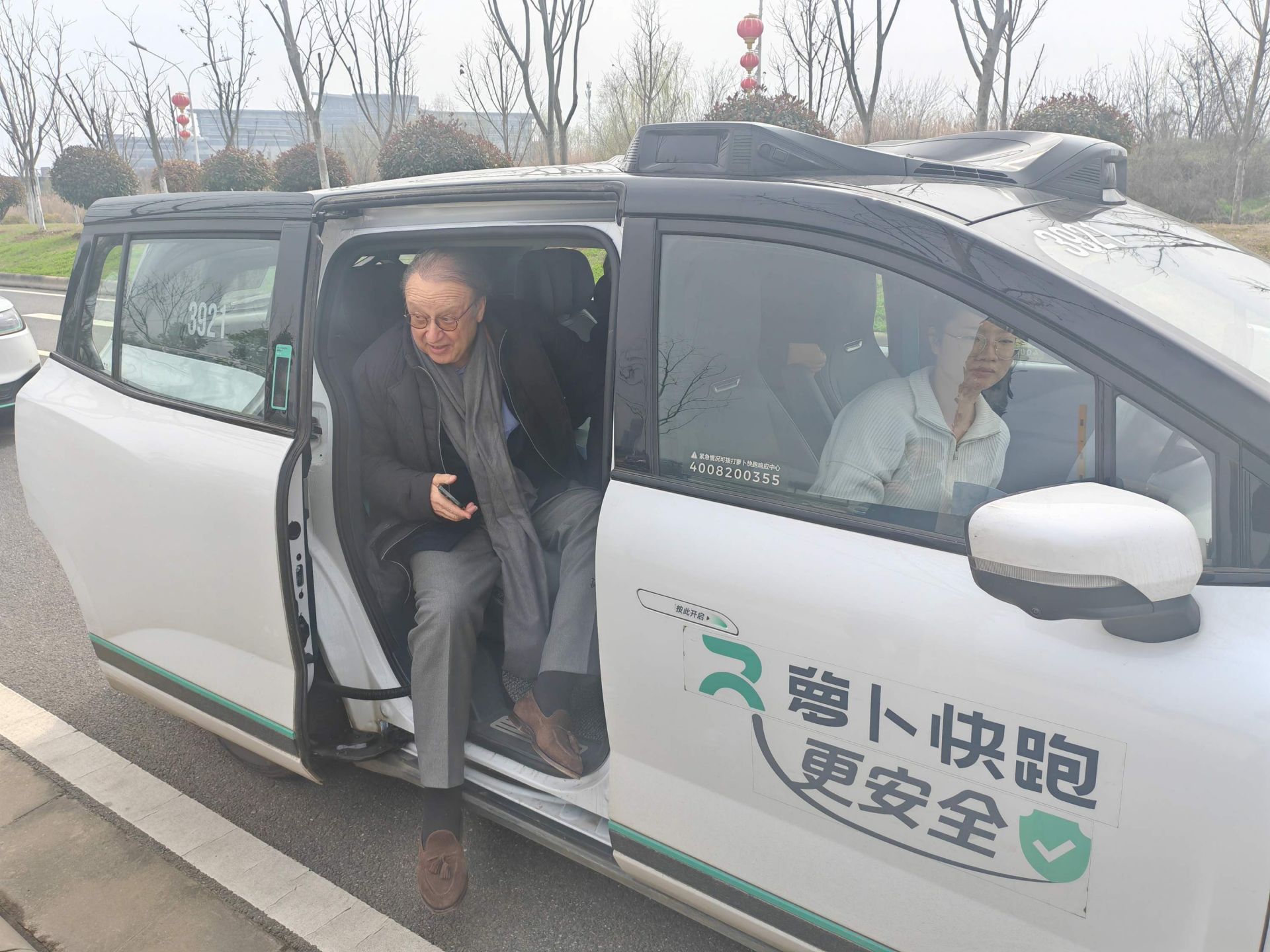 斯泰蘭蒂斯集團(tuán)副董事長(zhǎng)羅伯特·標(biāo)致試乘體驗(yàn)蘿卜快跑。通訊員供圖