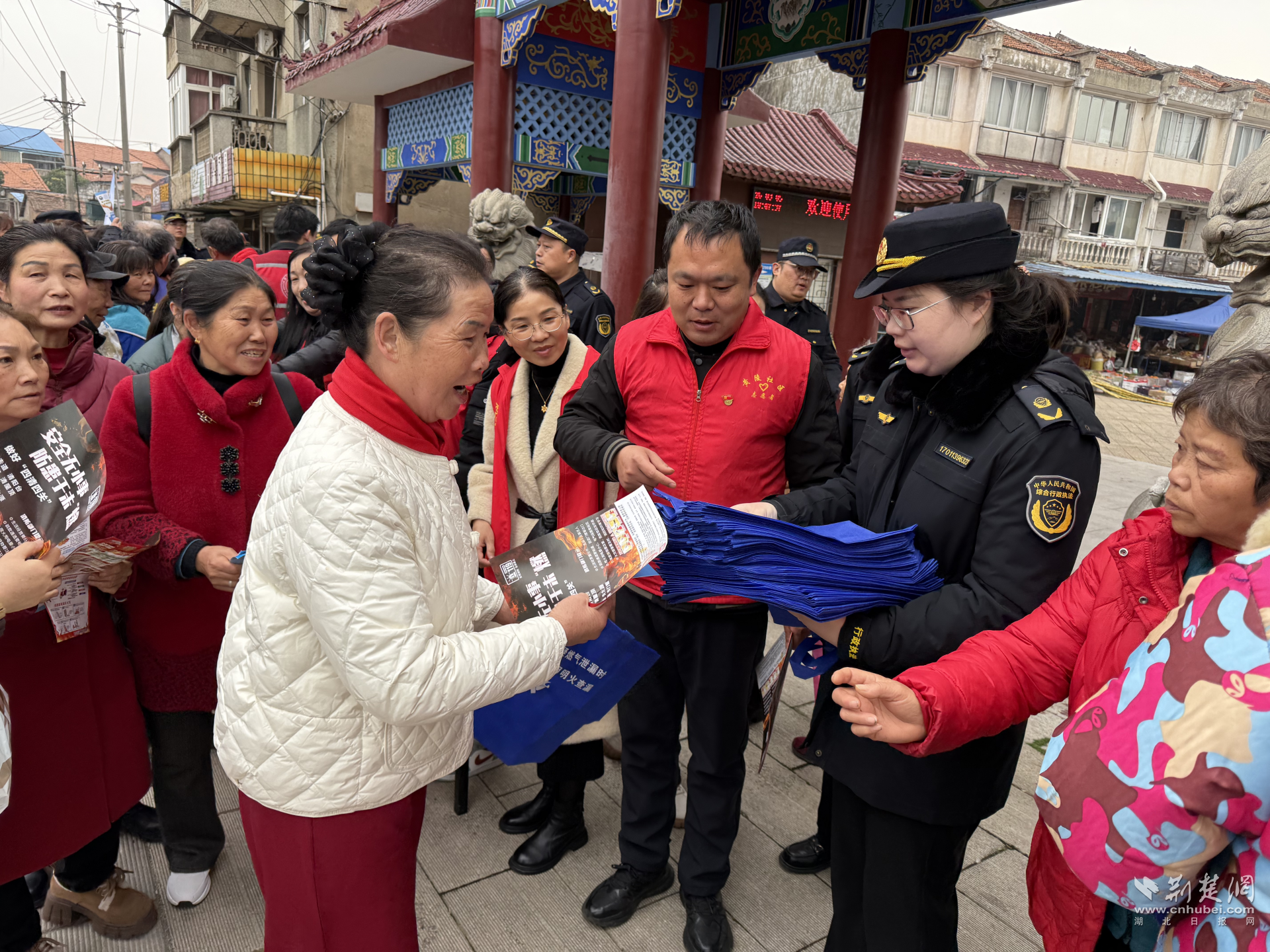 政策服務(wù)“送上門”,便民咨詢零距離。黃陵社區(qū)組織共建單位在黃陵社區(qū)集貿(mào)市場設(shè)置咨詢服務(wù)臺,結(jié)合“城管進(jìn)社區(qū)”活動,聯(lián)動城管執(zhí)法隊員向居民發(fā)放《垃圾分類指引》、《市容管理條例解讀》等宣傳折頁,面對面解答養(yǎng)犬登記、違建防控、燃?xì)馐褂冒踩葻狳c問題?,F(xiàn)場還設(shè)置了互動問答環(huán)節(jié),通過趣味答題的方式贈送環(huán)保袋、小燈籠等馬年主題紀(jì)念品,吸引百余名居民參與,讓政策法規(guī)“活”起來、接地氣。