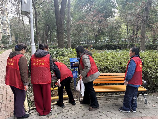 活動現(xiàn)場,全體人員齊聲合唱《學(xué)習(xí)雷鋒好榜樣》,激昂旋律點(diǎn)燃奉獻(xiàn)熱情。志愿者們分工協(xié)作、有序行動,一組擦拭樹木認(rèn)養(yǎng)牌、更換嶄新標(biāo)簽,為樹木明確“身份標(biāo)識”,增添護(hù)綠責(zé)任;另一組擦拭公共休閑椅、科普設(shè)施及兒童游樂設(shè)施,讓公共空間潔凈如新。