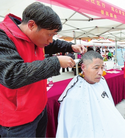 志愿者為居民理發(fā)。