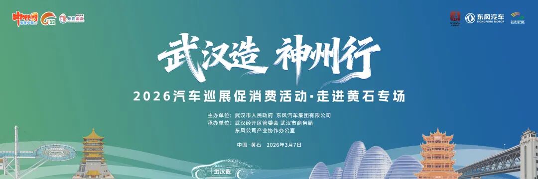 3月7日,“武漢造 神州行”2026汽車巡展促消費(fèi)活動(dòng)·走進(jìn)黃石專場(chǎng)將在黃石市團(tuán)城山萬(wàn)達(dá)廣場(chǎng)舉行。這也是2026汽車巡展促消費(fèi)活動(dòng)新春第三站。