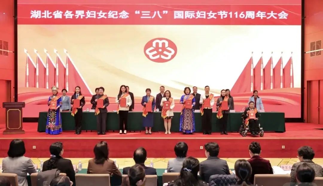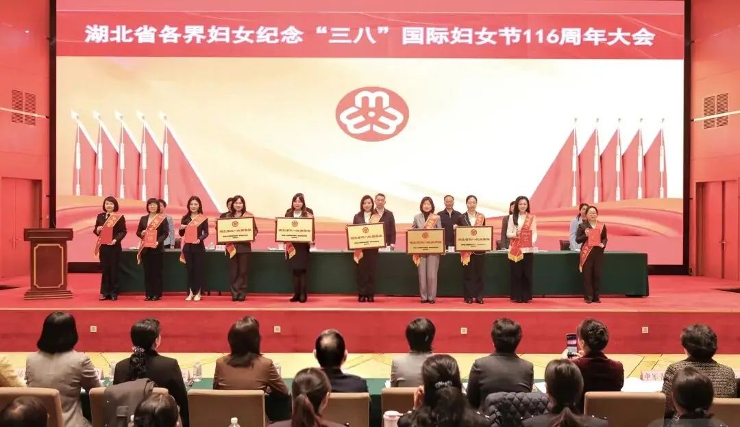 會(huì)議為獲得2024-2025年度湖北省三八紅旗手標(biāo)兵、三八紅旗手、三八紅旗集體代表進(jìn)行頒獎(jiǎng)。