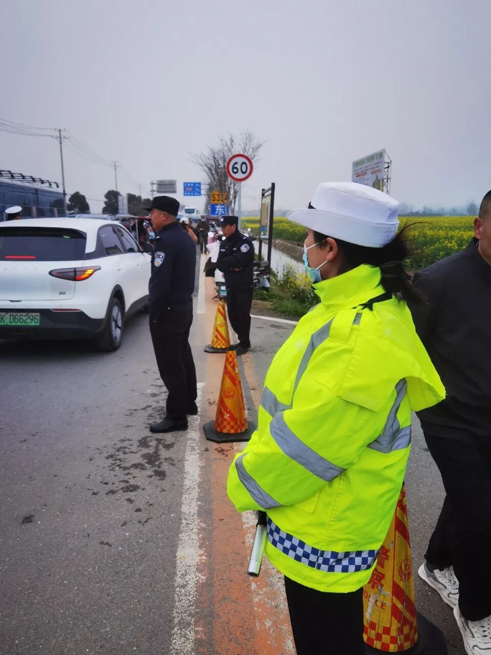 堅(jiān)守崗位的女警們巾幗不讓須眉,與男民警并肩作戰(zhàn),風(fēng)餐露宿,在花海旁的道路上默默堅(jiān)守。她們耐心指揮交通、熱情解答游客咨詢,細(xì)致開展交通安全宣傳,向過(guò)往群眾講解“一盔一帶”、安全行車等知識(shí),提升群眾交通安全意識(shí)。忙碌間隙,大家以警車為桌、以路面為席,簡(jiǎn)單就餐后迅速返回崗位,用實(shí)際行動(dòng)詮釋責(zé)任與擔(dān)當(dāng)。