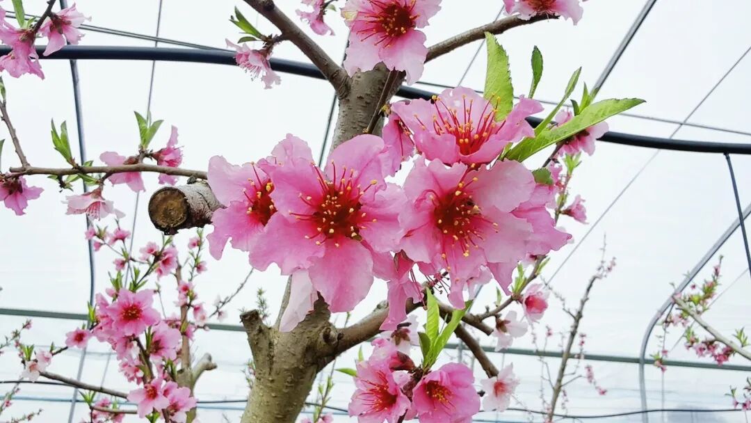 目前,基地共培育七大優(yōu)質油蟠桃品種,花期次第有序、錯峰綻放:紅肉油蟠桃于2月開花,預計5月10日左右成熟;黃肉、白肉油蟠桃均在3月開花,分別于5月20日、6月1日左右陸續(xù)成熟。這種錯峰培育模式不僅保障了果實品質,也實現(xiàn)了高效穩(wěn)產、錯峰上市,進一步豐富了湖北省早熟桃類市場供給,為基地帶來可觀的經濟效益和廣闊的市場前景。