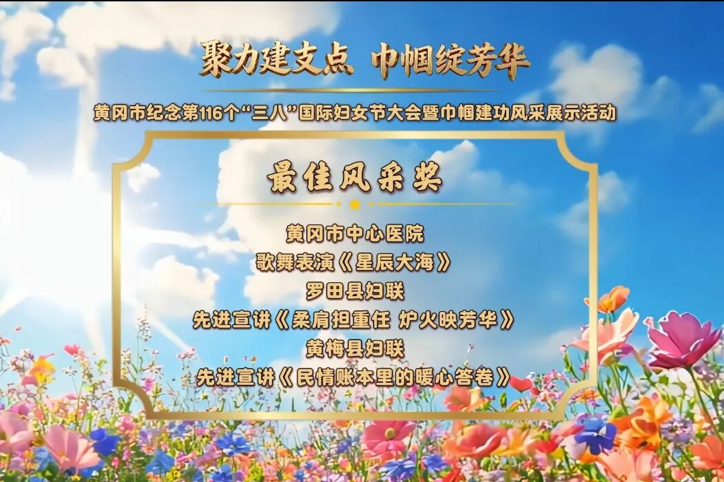 在第116個(gè)“三八”國(guó)際婦女節(jié)來(lái)臨之際,由黃岡市婦聯(lián)主辦的“聚力建支點(diǎn) 巾幗綻芳華”——黃岡市紀(jì)念“三八”國(guó)際婦女節(jié)大會(huì)暨巾幗建功風(fēng)采展示活動(dòng),在黃岡市融媒體中心演播廳隆重舉行。來(lái)自全市各界的婦女代表歡聚一堂,共慶節(jié)日、共話發(fā)展,全面展示黃岡婦女事業(yè)發(fā)展的豐碩成果,生動(dòng)呈現(xiàn)新時(shí)代黃岡女性的昂揚(yáng)風(fēng)貌。