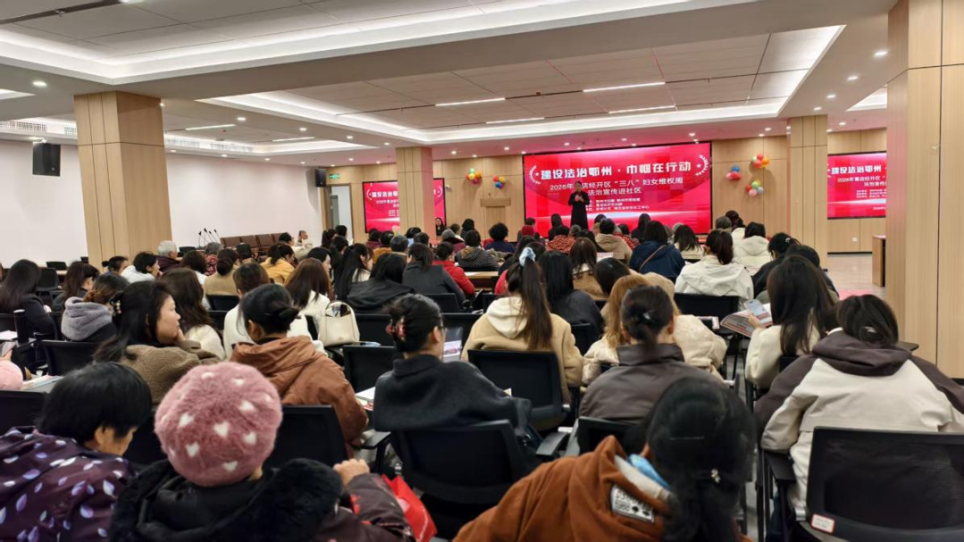 為進(jìn)一步加強(qiáng)婦女法治宣傳教育,提升維權(quán)意識(shí)和能力,助推平安法治鄂州建設(shè),3月5日,在第116個(gè)“三八”國(guó)際勞動(dòng)?jì)D女節(jié)來(lái)臨之際,由鄂州市婦聯(lián)、鄂州市司法局主辦,葛店經(jīng)開區(qū)婦聯(lián)承辦,葛店經(jīng)開區(qū)新城社區(qū)、湖北省好樂(lè)社工中心協(xié)辦的“建設(shè)法治鄂州·巾幗在行動(dòng)”——2026年葛店經(jīng)開區(qū)“三八”婦女維權(quán)周法治宣傳進(jìn)社區(qū)活動(dòng)在新城社區(qū)順利開展。來(lái)自市各社區(qū)(村)的婦聯(lián)執(zhí)委、巾幗志愿者及婦女群眾代表等100余人共同參與,現(xiàn)場(chǎng)氣氛熱烈。