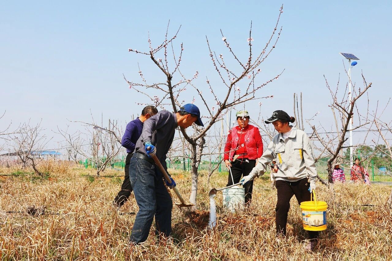 走進(jìn)千畝桃園,淡淡的桃花香混著泥土的氣息撲面而來。桃樹下,村民們?nèi)宄扇?,分工協(xié)作。負(fù)責(zé)挖坑的揮動(dòng)鋤頭,在樹冠投影下方挖出整齊的施肥穴;負(fù)責(zé)添肥的緊隨其后,將一瓢瓢配比好的有機(jī)肥精準(zhǔn)施入,再覆土填平,動(dòng)作嫻熟流暢。