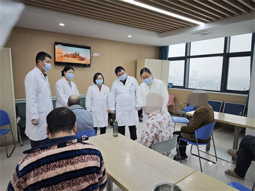 武漢市武東醫(yī)院醫(yī)護(hù)團(tuán)隊與患者交流。 通訊員供圖