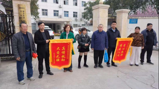 到達(dá)河南鄲城縣,昌達(dá)堂妹及家人為工作人員送錦旗。通訊員 供圖