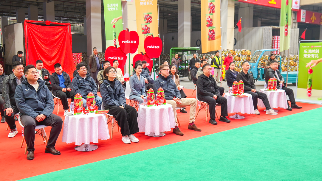 在熱烈的掌聲中,劉杰、Tom Lane、菀銘煜、姜濤等嘉賓共同為本次發(fā)布會剪彩。隨后,眾人移步至佳農(nóng)檔口前,共同開啟樂淇火箭蘋果貨柜。