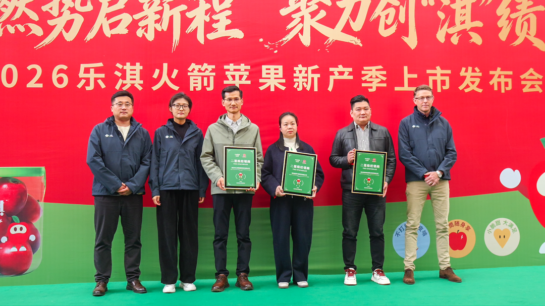 隨著柜門打開,一件件包裝精美的樂淇蘋果整齊陳列,標(biāo)志著2026季樂淇火箭蘋果在華中市場正式啟航。