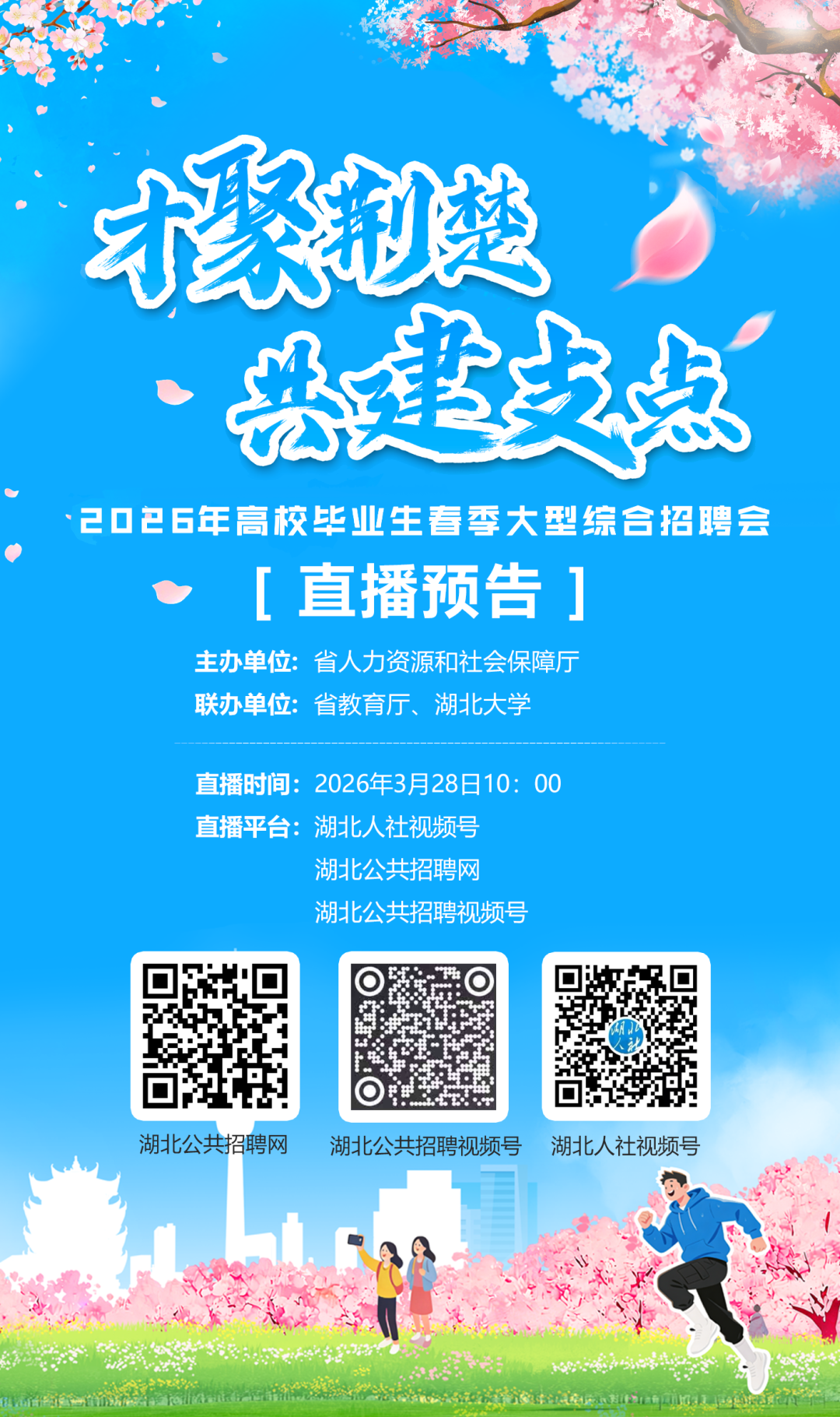 春暖花開(kāi),才聚荊楚。誠(chéng)邀你共赴這場(chǎng)人才盛會(huì),3月28日,湖北大學(xué)3號(hào)體育館線上線下,不見(jiàn)不散!
