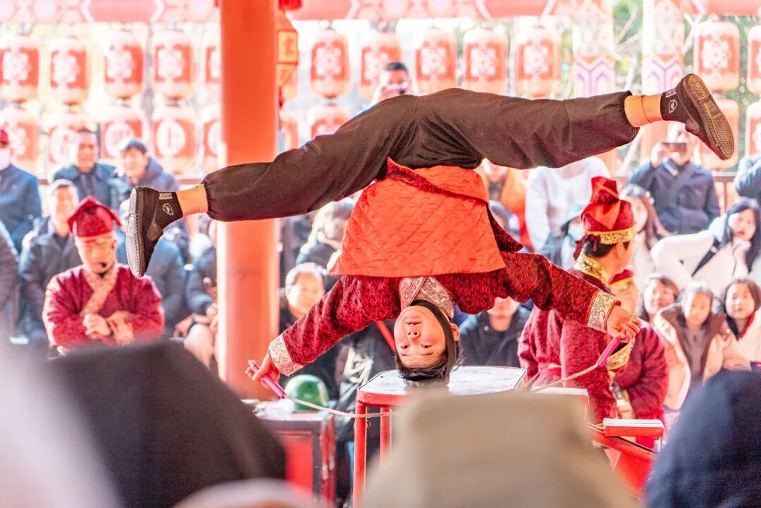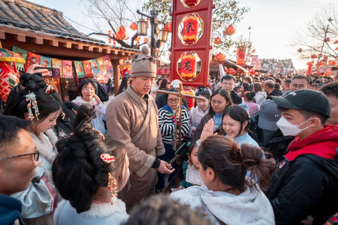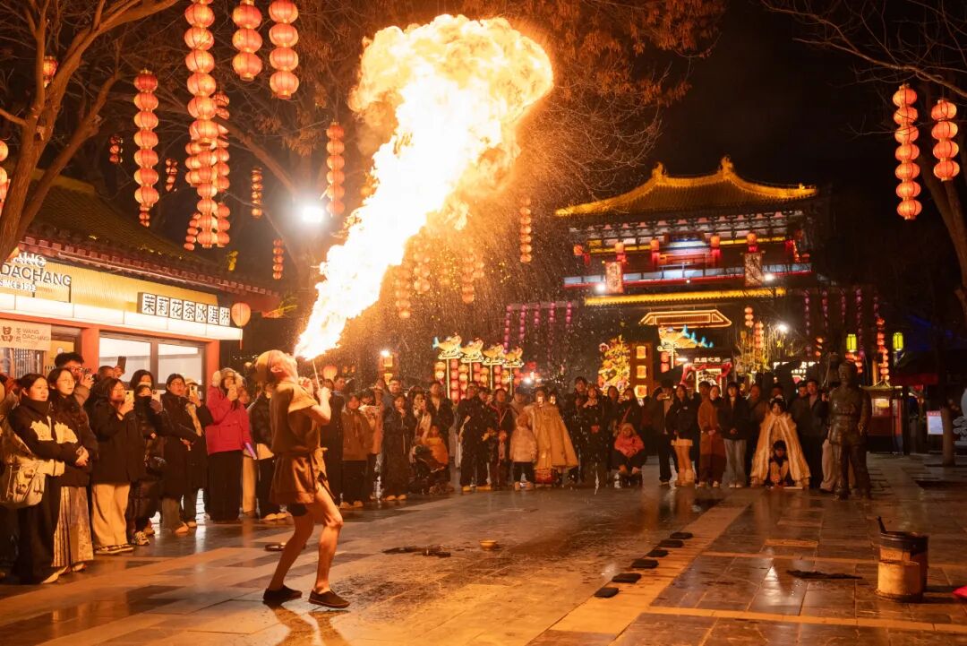 變臉互動秀、氣功噴火、飛刀秀、扛竿等民俗絕活,讓千年前的市井煙火鮮活重現(xiàn)。