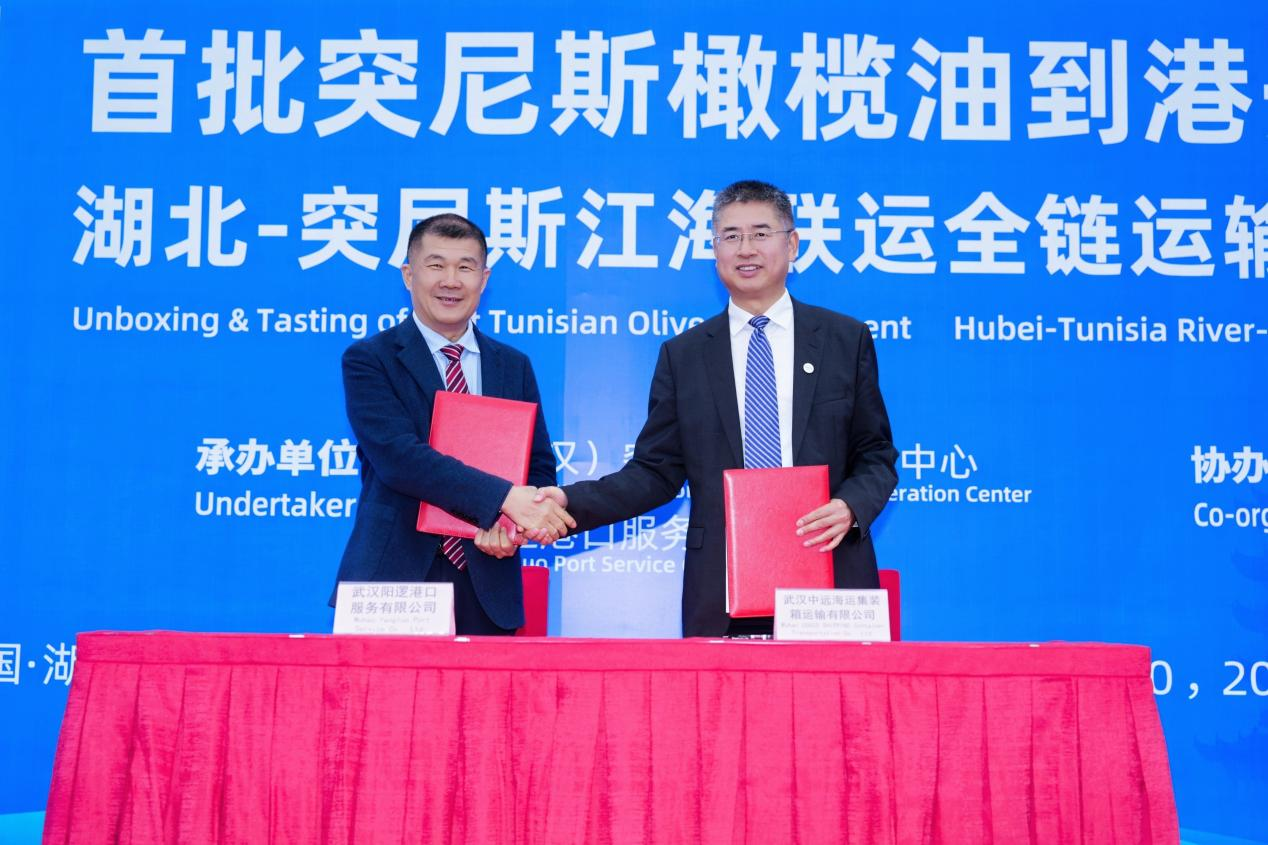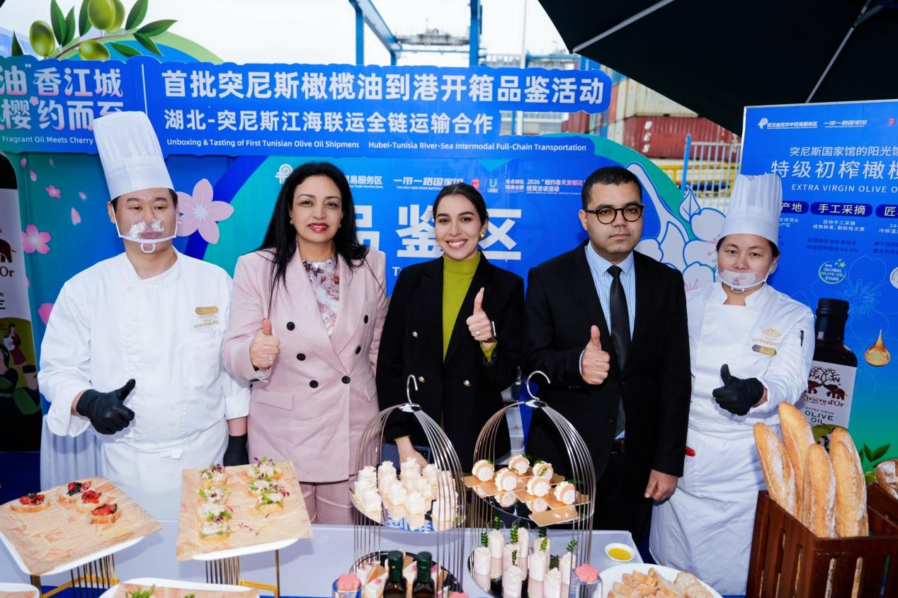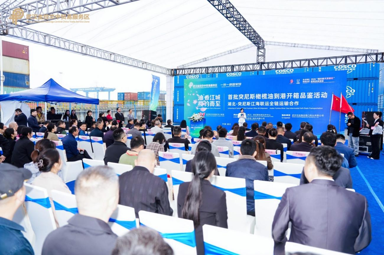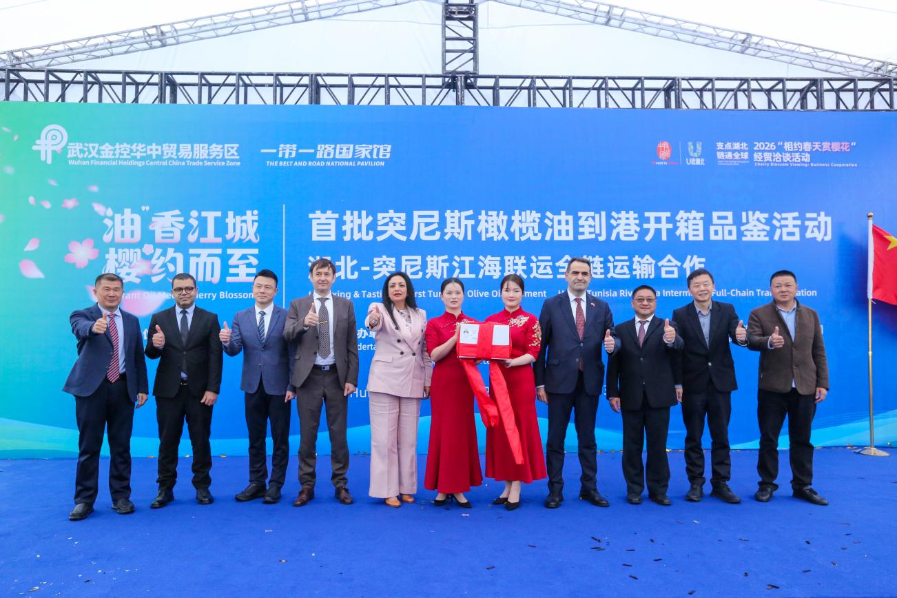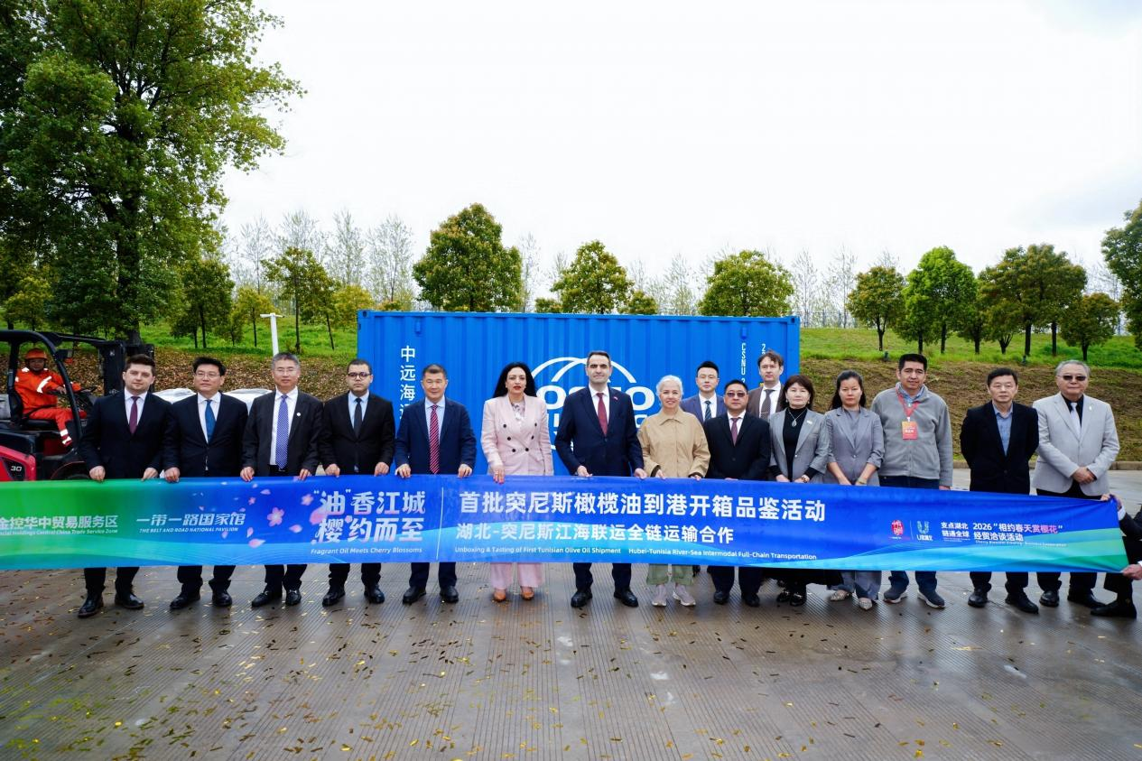 荊楚網(wǎng)(湖北日?qǐng)?bào)網(wǎng))訊(記者 徐蕾 通訊員 沈商軒)3月30日,“首批突尼斯橄欖油到港開(kāi)箱品鑒活動(dòng)暨湖北—突尼斯江海聯(lián)運(yùn)全鏈運(yùn)輸合作儀式”在武漢陽(yáng)邏國(guó)際港區(qū)中遠(yuǎn)海運(yùn)CSP碼頭成功舉辦。本次活動(dòng)是2026“相約春天賞櫻花”經(jīng)貿(mào)洽談活動(dòng)的專題系列之一,以“支點(diǎn)湖北 鏈通全球”為主題,搭建全球高端資源對(duì)接平臺(tái),共促開(kāi)放合作?;顒?dòng)由突尼斯共和國(guó)駐華大使館主辦,中國(guó)(武漢)突尼斯經(jīng)貿(mào)合作中心、武漢陽(yáng)邏港口服務(wù)有限公司承辦,武漢中遠(yuǎn)海運(yùn)港口碼頭有限公司協(xié)辦。突尼斯、土耳其駐華使節(jié)、俄羅斯駐武漢總領(lǐng)事,湖北省、武漢市相關(guān)部門及企業(yè)負(fù)責(zé)人等嘉賓出席,共同見(jiàn)證突尼斯橄欖油首次以江海聯(lián)運(yùn)模式直達(dá)陽(yáng)邏港,標(biāo)志著鄂突經(jīng)貿(mào)物流合作邁入全鏈條新階段。