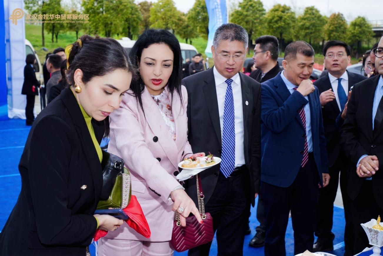 在全場(chǎng)矚目下,突尼斯大使館公使伊姆-阿雅迪女士與湖北省商務(wù)廳二級(jí)巡視員陳斌共同為首批抵港橄欖油集裝箱開(kāi)箱。工作人員取出樣品,由禮儀人員呈送展示,現(xiàn)場(chǎng)掌聲熱烈。隨后,土耳其駐華大使塞爾丘克?于納爾、突尼斯駐華商務(wù)參贊阿卜杜勒哈拉克?杜卡爾,以及武漢市外辦副主任李軍、市商務(wù)局一級(jí)調(diào)研員馬宗輝、武漢長(zhǎng)江新區(qū)陽(yáng)邏街道黨工委書(shū)記申濟(jì)豐、武漢陽(yáng)邏港口服務(wù)有限公司總經(jīng)理徐寶衛(wèi)一同上臺(tái),現(xiàn)場(chǎng)品鑒突尼斯橄欖油,直觀感受其純正品質(zhì)與獨(dú)特果香。