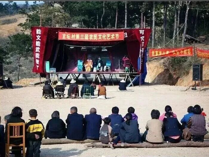 第一年,黃慶穩(wěn)帶著大伙兒在草地上裝好音箱、搭起戲臺,扯起“玄壇村第一屆農(nóng)民藝術(shù)節(jié)”的紅布,這場農(nóng)民藝術(shù)節(jié)就正式開演了。這種充滿“土味”的文藝形式,一亮相就吸引了全村老少的圍觀。