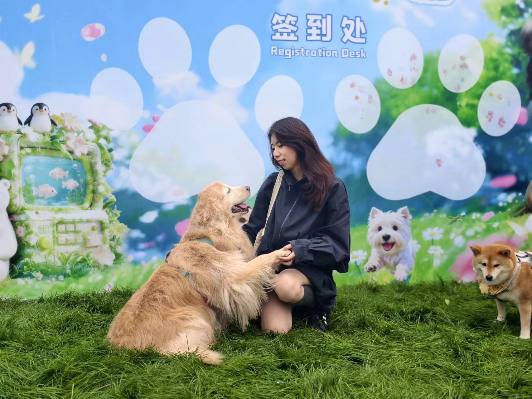 入口處特設(shè)“握爪簽到墻”,主人可留下愛(ài)寵的爪印簽名,定格初見(jiàn)瞬間。現(xiàn)場(chǎng)布置人寵波波球等趣味裝置,隨手一拍即出片;更有“狗狗交友會(huì)”環(huán)節(jié),通過(guò)障礙賽、尋寶游戲促進(jìn)毛孩互動(dòng),讓“社牛”和“i狗”都能找到同頻伙伴,在草地上盡情撒歡。