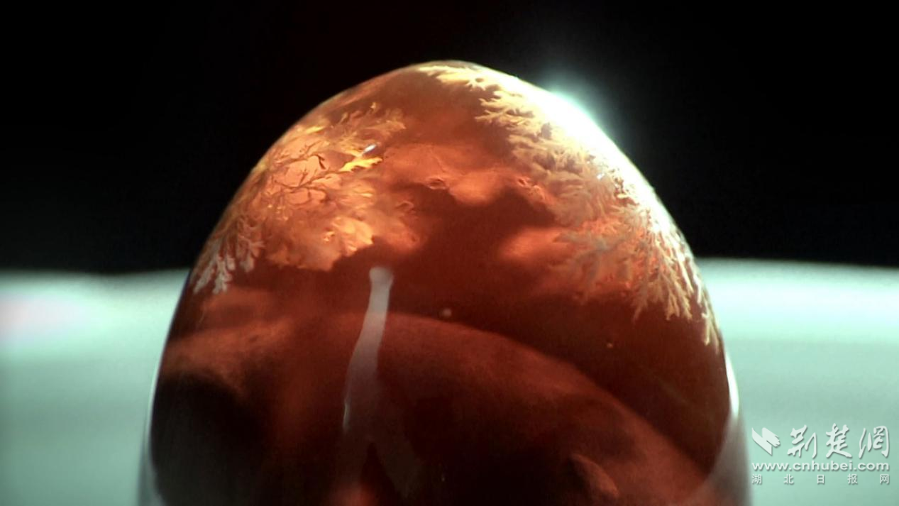 “這薄薄的一層白膜,是‘涂膜皮蛋技術(shù)’,也是我們皮蛋產(chǎn)品漂洋過海的關(guān)鍵一環(huán)?!痹谏竦す菊故敬髲d,工廠部經(jīng)理袁金友剝開皮蛋外殼展示道。