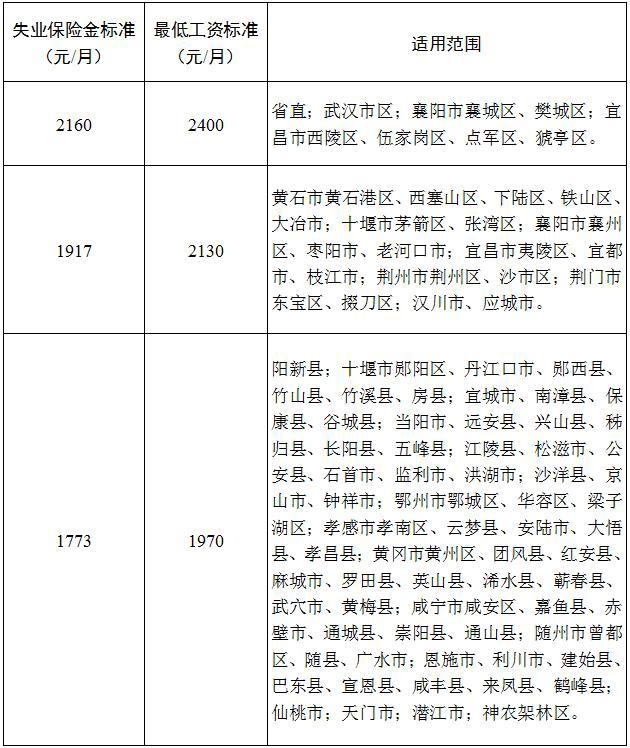 附件:湖北省分區(qū)域失業(yè)保險金發(fā)放標準