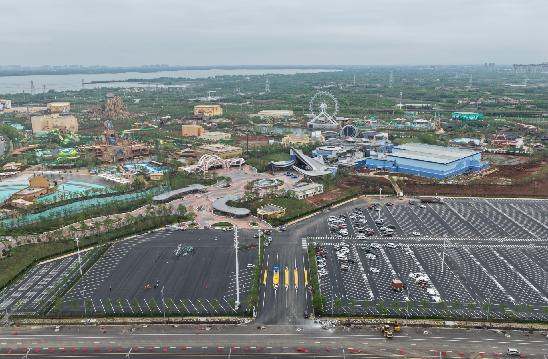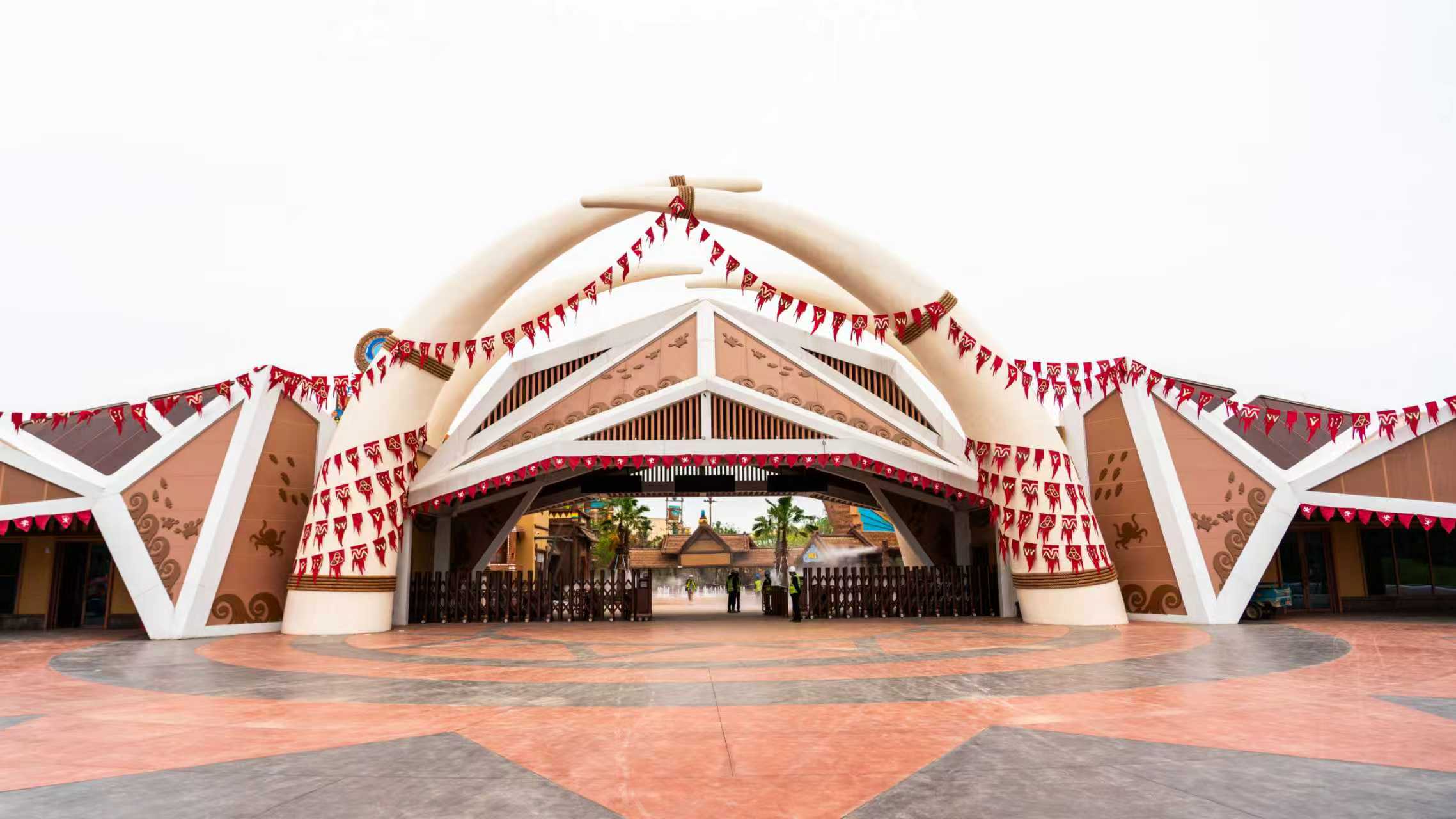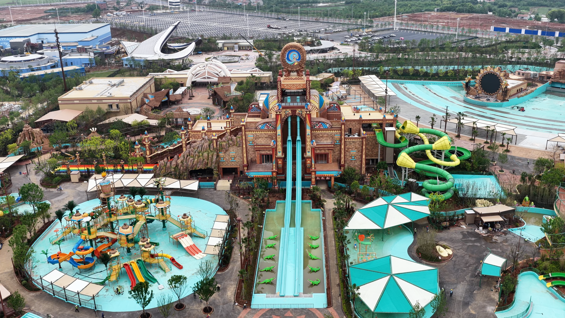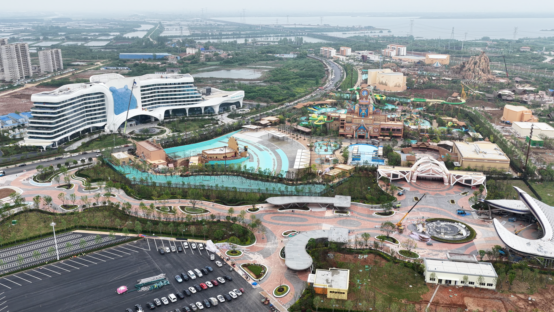 華強方特(孝感)旅游發(fā)展有限公司總經理佟興介紹,目前,方特狂野大陸9大室內場館中,6個已完工并進入調試階段,剩余3個正進行安裝收尾;32個室外項目已有31個完成安裝,園林景觀建設完成90%?!靶艹鰶]”水上運動基地游樂設施已全部安裝完畢,園林景觀建設完成92%。熊出沒酒店主體客房已基本交付,僅剩大廳、幕墻及智能化系統(tǒng)等工程還在完善,整體工程進度已超95%。預計“五一”小長假前,除少量項目外,園區(qū)主體建設將基本完成,并逐步進入分區(qū)域內測及模擬運營階段。