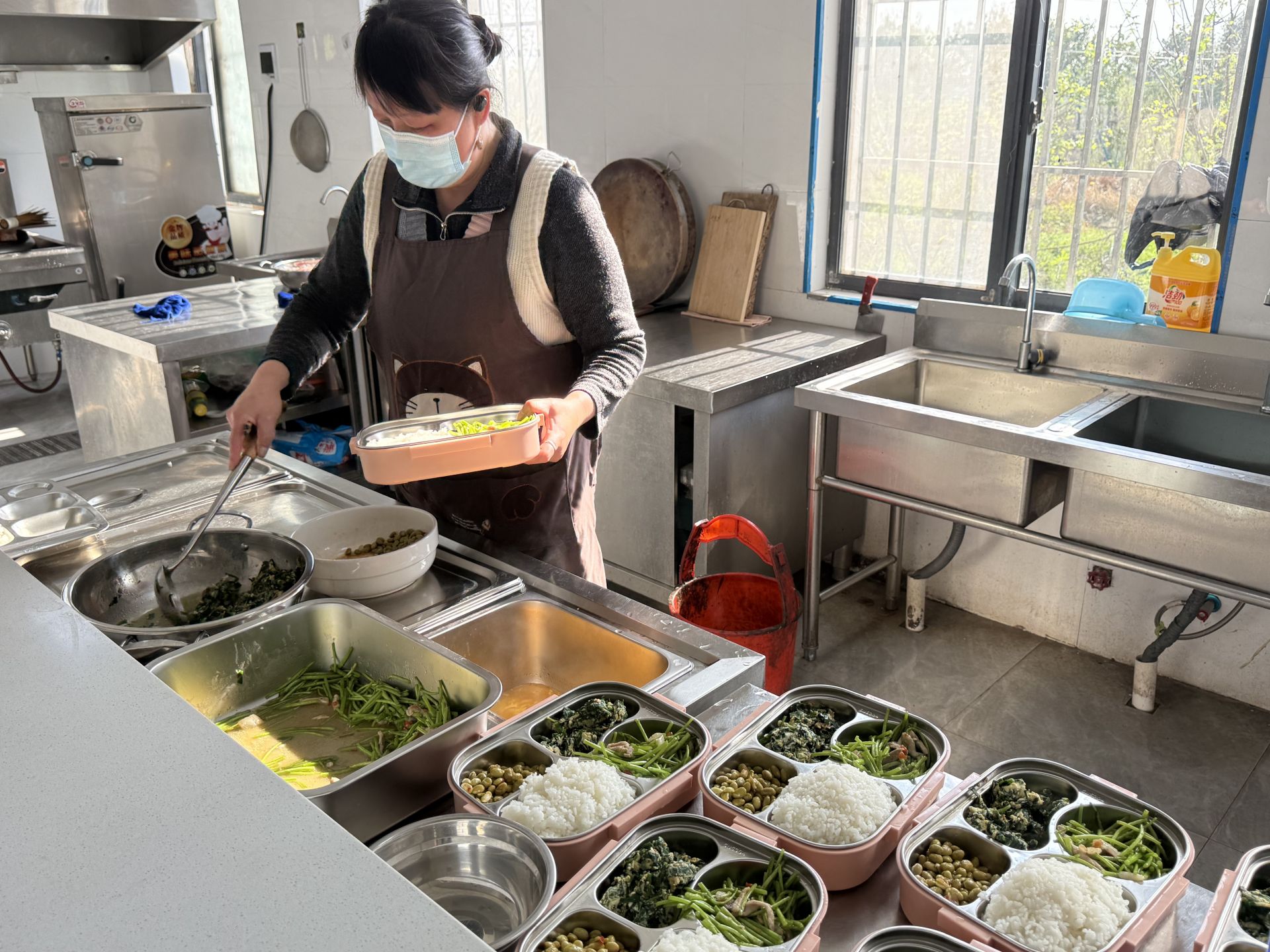 幸福食堂的工作人員正在為老人打包飯菜。黃菲 攝
