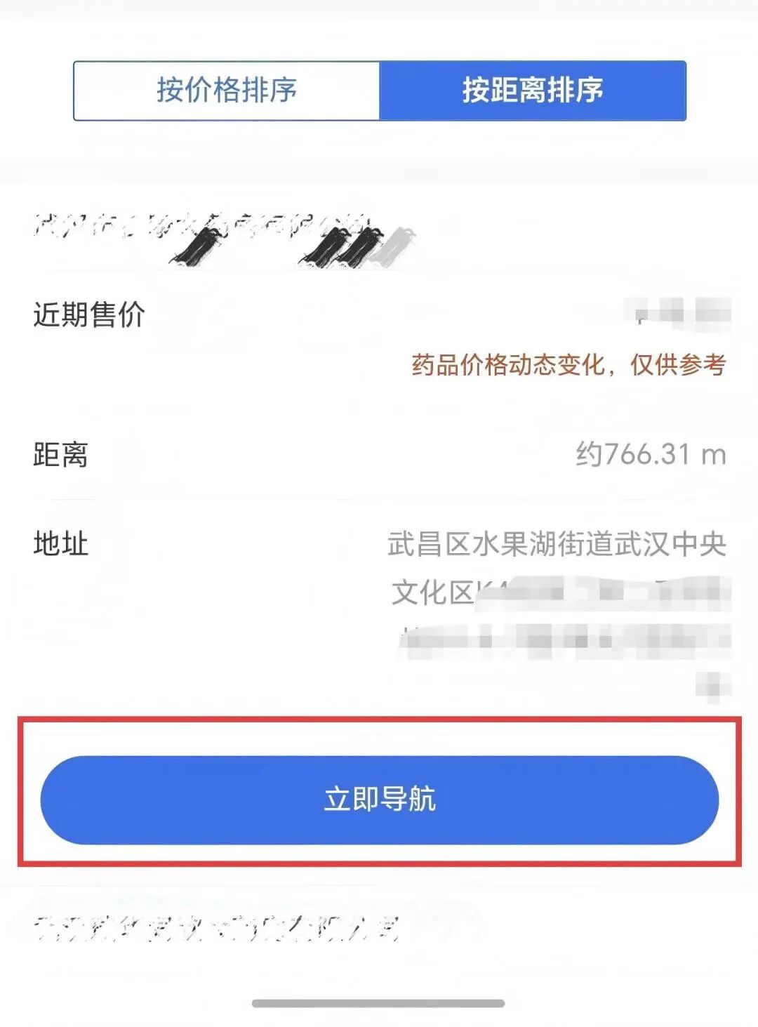 第一步:不知道藥店在哪兒?在選定某家藥店后,點擊“立即導航”。