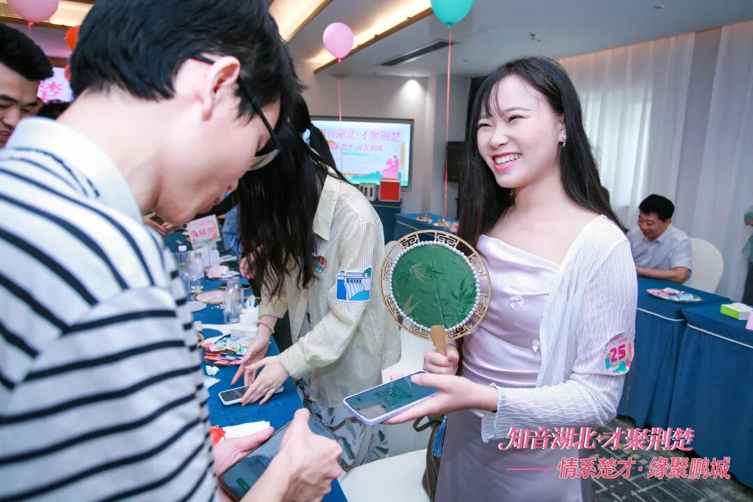 為拉近嘉賓們的距離、增進(jìn)彼此了解,活動(dòng)精心設(shè)計(jì)了鄉(xiāng)音速配、楚韻競(jìng)知、聲動(dòng)情緣、心有靈犀等趣味互動(dòng)環(huán)節(jié)。一句句熟悉的湖北方言脫口而出,一次次精彩的家鄉(xiāng)知識(shí)搶答輪番上演,瞬間喚醒了在場(chǎng)青年的家鄉(xiāng)記憶,現(xiàn)場(chǎng)氣氛熱烈而歡快。其中,最具特色的非遺宋錦團(tuán)扇DIY環(huán)節(jié),將湖北非遺文化與交友場(chǎng)景巧妙融合,男女嘉賓攜手執(zhí)筆、共繪團(tuán)扇,在指尖流轉(zhuǎn)間傳遞心意,讓傳統(tǒng)文化成為聯(lián)結(jié)情感的浪漫紐帶,現(xiàn)場(chǎng)氛圍感拉滿。