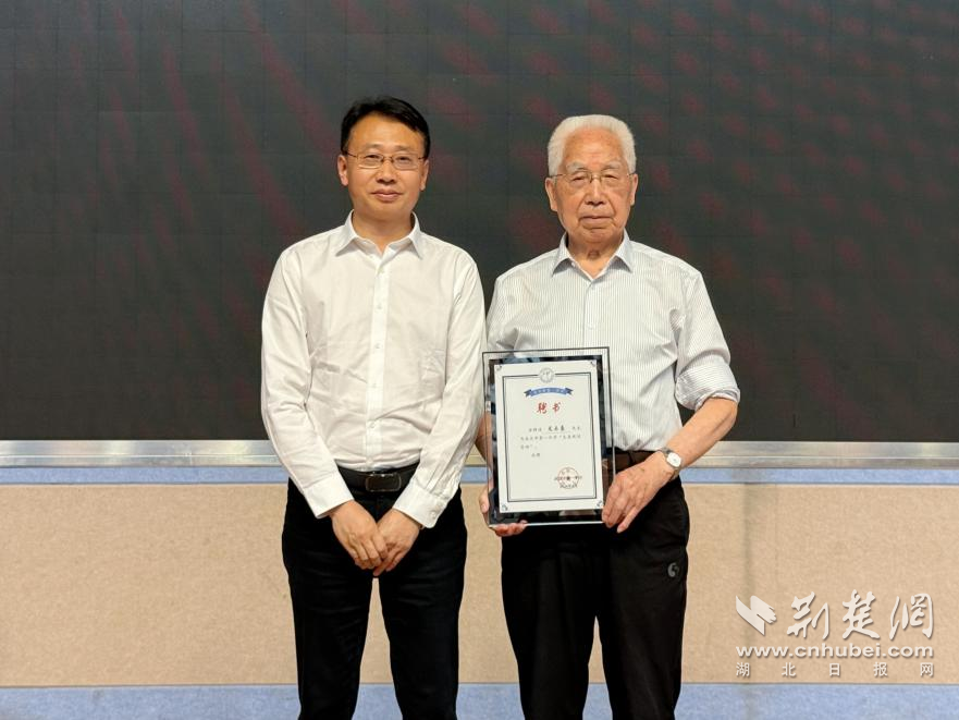 活動中,武漢市第一中學(xué)校長胡志剛為龍樂豪頒發(fā)“生涯規(guī)劃導(dǎo)師”聘書。