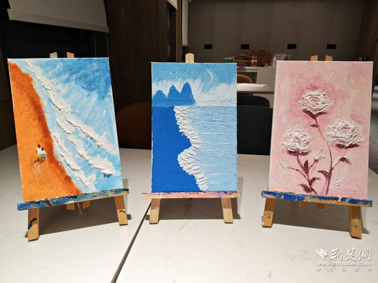 公寓里青年人才代表創(chuàng)作的石英肌理畫(huà)。通訊員供圖