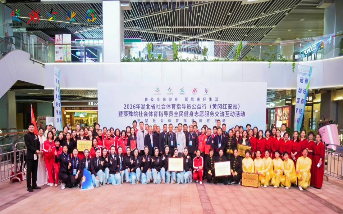 4月17日,2026年湖北省社會(huì)體育指導(dǎo)員公益行(紅安站)暨鄂豫皖社會(huì)體育指導(dǎo)員全民健身志愿服務(wù)交流互動(dòng)活動(dòng)在黃岡紅安隆重舉行。本次活動(dòng)由湖北省體育局主辦,湖北省社會(huì)體育管理中心、湖北省社會(huì)體育指導(dǎo)員協(xié)會(huì)、黃岡市體育事業(yè)發(fā)展中心、紅安縣文化和旅游局承辦,河南省全民健身中心、安徽省社會(huì)體育指導(dǎo)中心支持,來自湖北、河南、安徽三省的1000余名社會(huì)體育指導(dǎo)員代表、全民健身愛好者分別參與相關(guān)活動(dòng),共同奏響社會(huì)體育指導(dǎo)員助力全民健身花開荊楚的華美樂章。