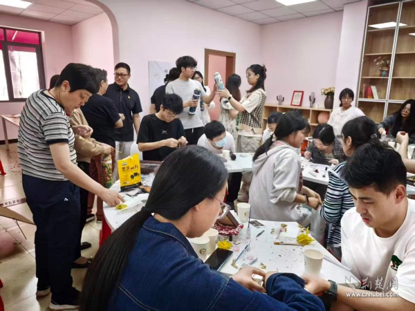 活動(dòng)以非遺文化體驗(yàn)為特色,現(xiàn)場(chǎng)氛圍溫馨浪漫。螺鈿手工制作、金箔畫創(chuàng)作等環(huán)節(jié),讓青年們?cè)谥讣馑囆g(shù)中拉近距離。大家圍坐一堂,動(dòng)手創(chuàng)作、交流互動(dòng),從手作技巧聊到生活日常,歡聲笑語間,陌生感悄然消融,現(xiàn)場(chǎng)氣氛輕松熱烈。