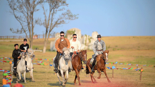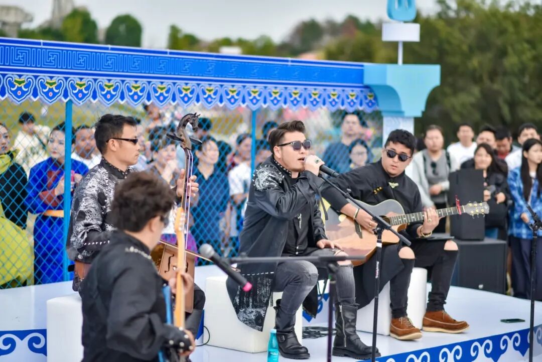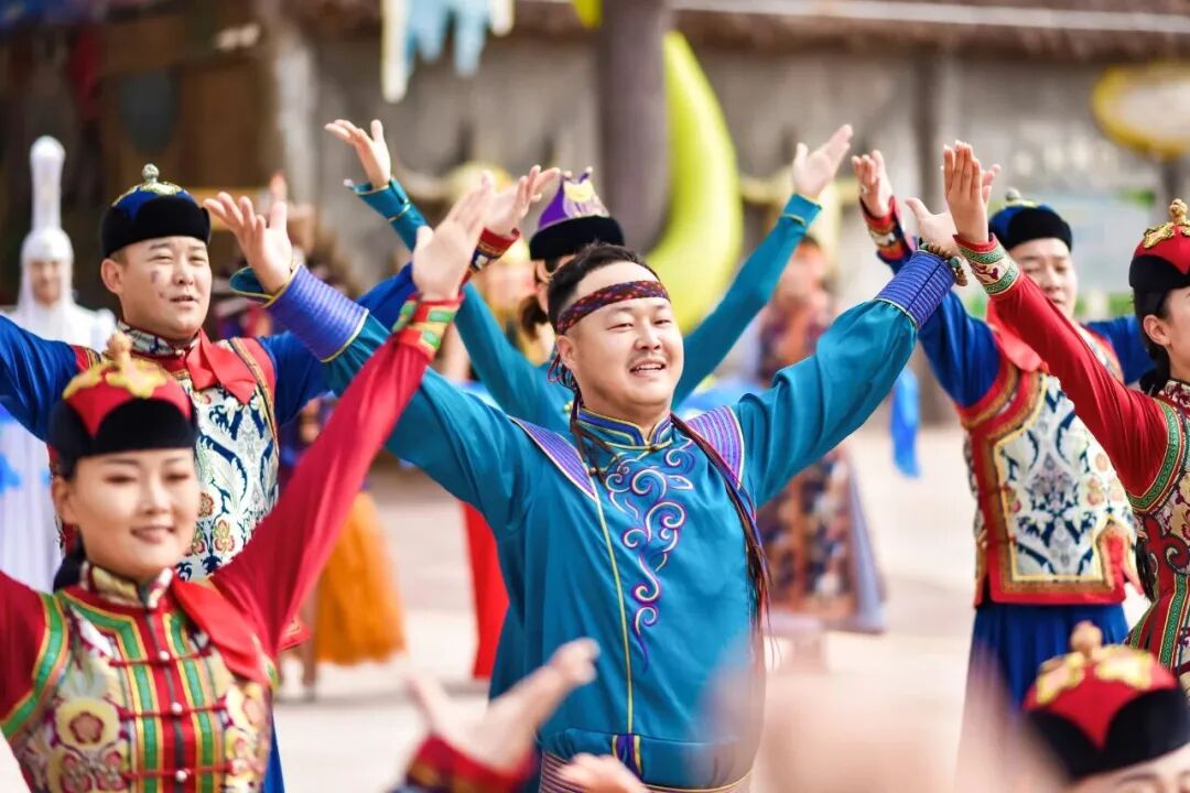 烏蘭牧騎全天候巡回演出,蒙古長調、呼麥、馬頭琴經典演奏不間斷上演。實景演繹央視春晚熱曲《奔騰的海騮馬》,蒙鄂兩地演員同臺合唱《敖包相會》,馬背舞蹈搭配民族合唱,草原文化與荊楚少數民族文化深度交融,唱響民族團結之歌。