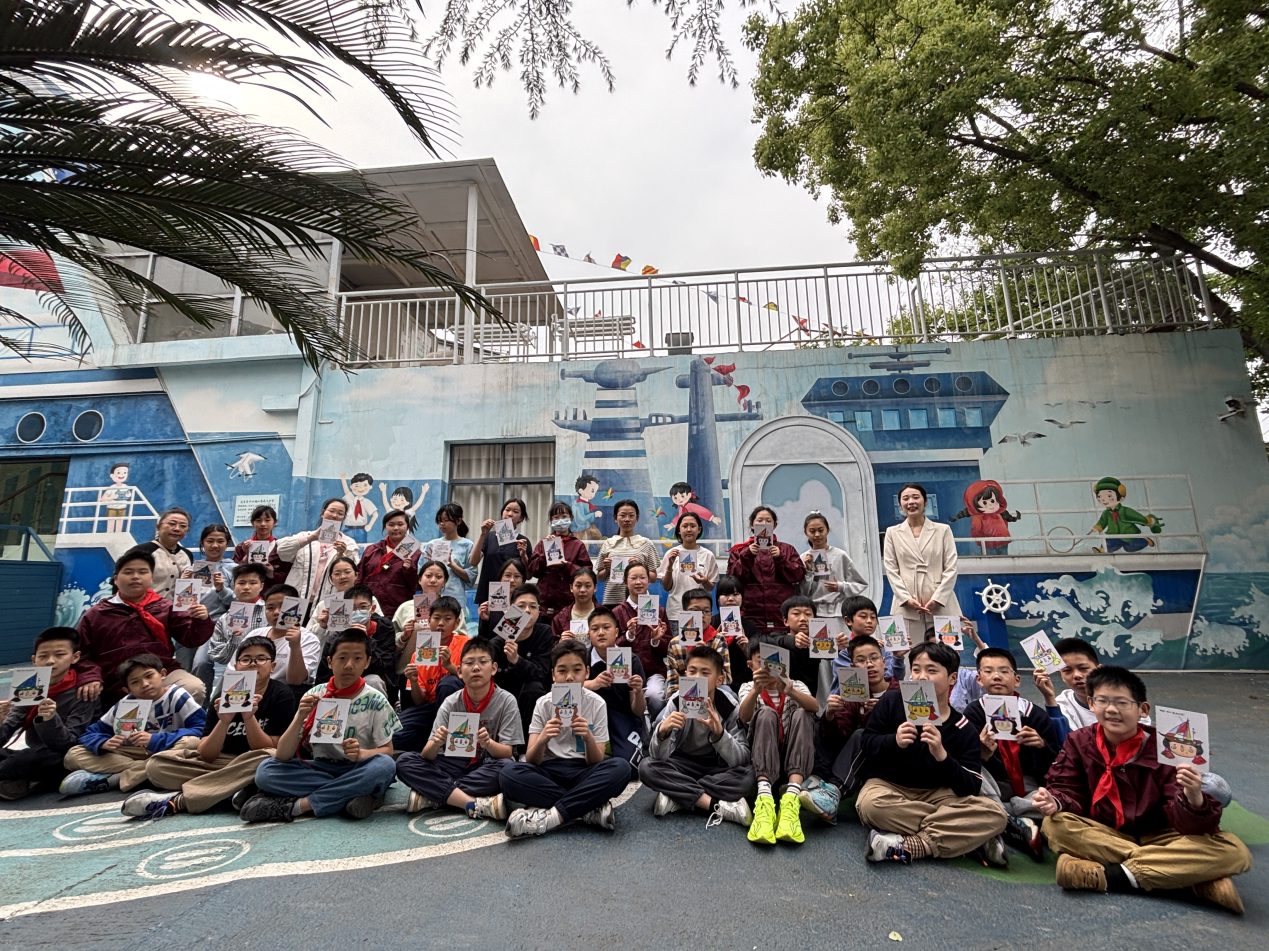在圖書室,社教部副主任謝蓓開展“強(qiáng)國有我”讀書分享會(huì),以館校專屬少兒讀物《百年中山艦百問》為載體,帶領(lǐng)同學(xué)們探尋中山艦的誕生、征戰(zhàn)、殉國、打撈與修復(fù)全過程?;顒?dòng)中,學(xué)生們被中山艦將士保衛(wèi)大武漢的英雄事跡深深打動(dòng),對“25號(hào)銘文瓷勺與瓷碗配對”的文物故事倍感新奇。最后,博物館向?qū)W校捐贈(zèng)圖書,助力紅色歷史在校園持續(xù)傳播。