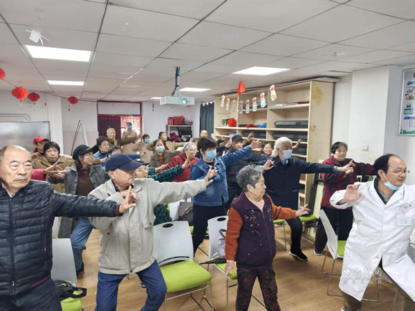 八段錦教學(xué)環(huán)節(jié),指導(dǎo)老師逐一示范“兩手托天理三焦”等動(dòng)作,講解呼吸與動(dòng)作的配合技巧,對(duì)老人們不標(biāo)準(zhǔn)的動(dòng)作手把手給予糾正。