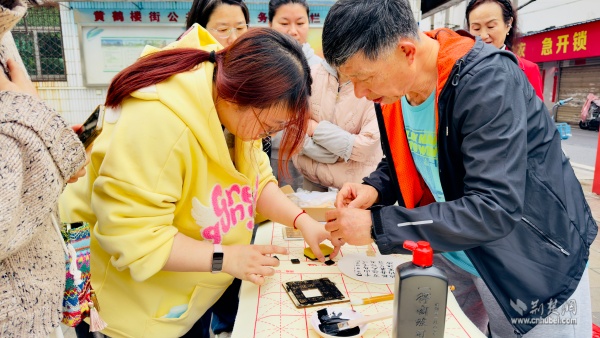 非遺文化體驗(yàn)站前人頭攢動,活字印刷的墨香、詩詞團(tuán)扇的雅致吸引居民紛紛動手操作。
