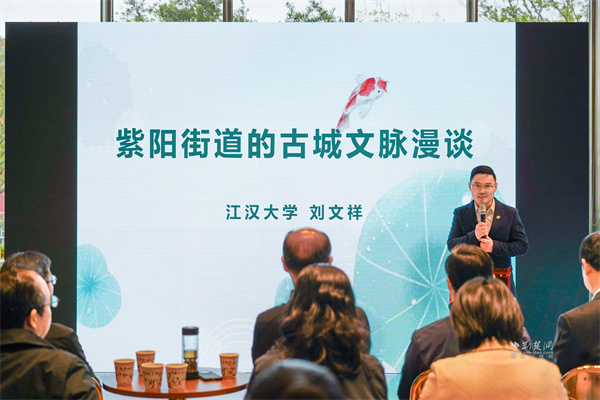 活動(dòng)在武漢市文物考古所考古隊(duì)工作人員圍繞武船廠區(qū)遺址的發(fā)掘?qū)嵺`分享中拉開(kāi)帷幕。“老城門下尋根文脈”的探訪讓委員們和活動(dòng)嘉賓深刻認(rèn)識(shí)到需以敬畏之心對(duì)待歷史、以科學(xué)之策守護(hù)遺產(chǎn)、以創(chuàng)新之道轉(zhuǎn)化資源。隨后的“萬(wàn)千城象中預(yù)見(jiàn)未來(lái)”環(huán)節(jié),各位委員和嘉賓結(jié)合自身所長(zhǎng)進(jìn)行分享。九三學(xué)社江漢大學(xué)委員會(huì)副主委劉文祥從武當(dāng)之巔的“紫陽(yáng)造”和紫陽(yáng)之名由來(lái)解讀紫陽(yáng)文脈。湖北廣播電視臺(tái)高級(jí)記者盧綱、區(qū)人大代表韓文亮分別就武昌灣歷史文化資源活化利用、環(huán)紫陽(yáng)湖片區(qū)的IP打造進(jìn)行交流發(fā)言。青年企業(yè)家代表章崴、王思宇則立足企業(yè)發(fā)展與區(qū)域建設(shè)同頻共振的視角,分享作為文化企業(yè)如何在打造武昌特色的文化IP與豐富文創(chuàng)業(yè)態(tài)中發(fā)揮作用。