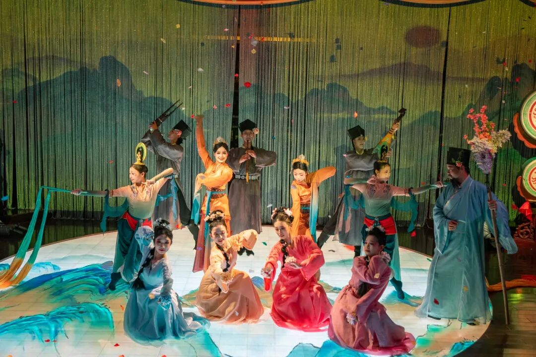 古典重現(xiàn):《宋廷隊(duì)舞》以“大曲”為基礎(chǔ)結(jié)構(gòu),配上詩(shī)歌、道白,再現(xiàn)宋代宮廷史詩(shī)級(jí)樂(lè)舞,你看到的,不僅僅是一場(chǎng)表演,更是一段千年舞蹈史的活態(tài)重現(xiàn)。
