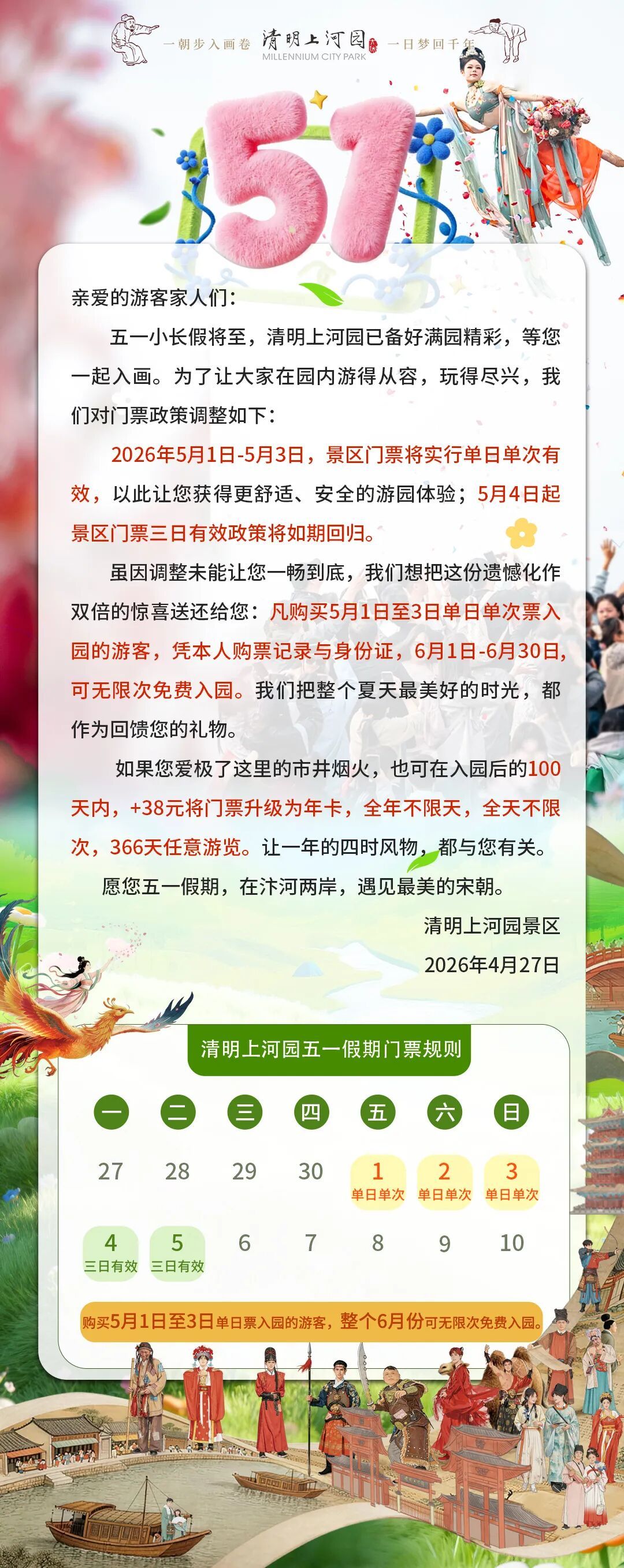 清明上河園,不僅是景區(qū),更是所有向往宋朝的家人們共同的烏托邦。無(wú)論您何時(shí)來(lái),我們都在此處,掃榻相迎。期待與您一起,度過(guò)一個(gè)愉快的五一假期。我們?cè)陂_(kāi)封,在清明上河園,等你。