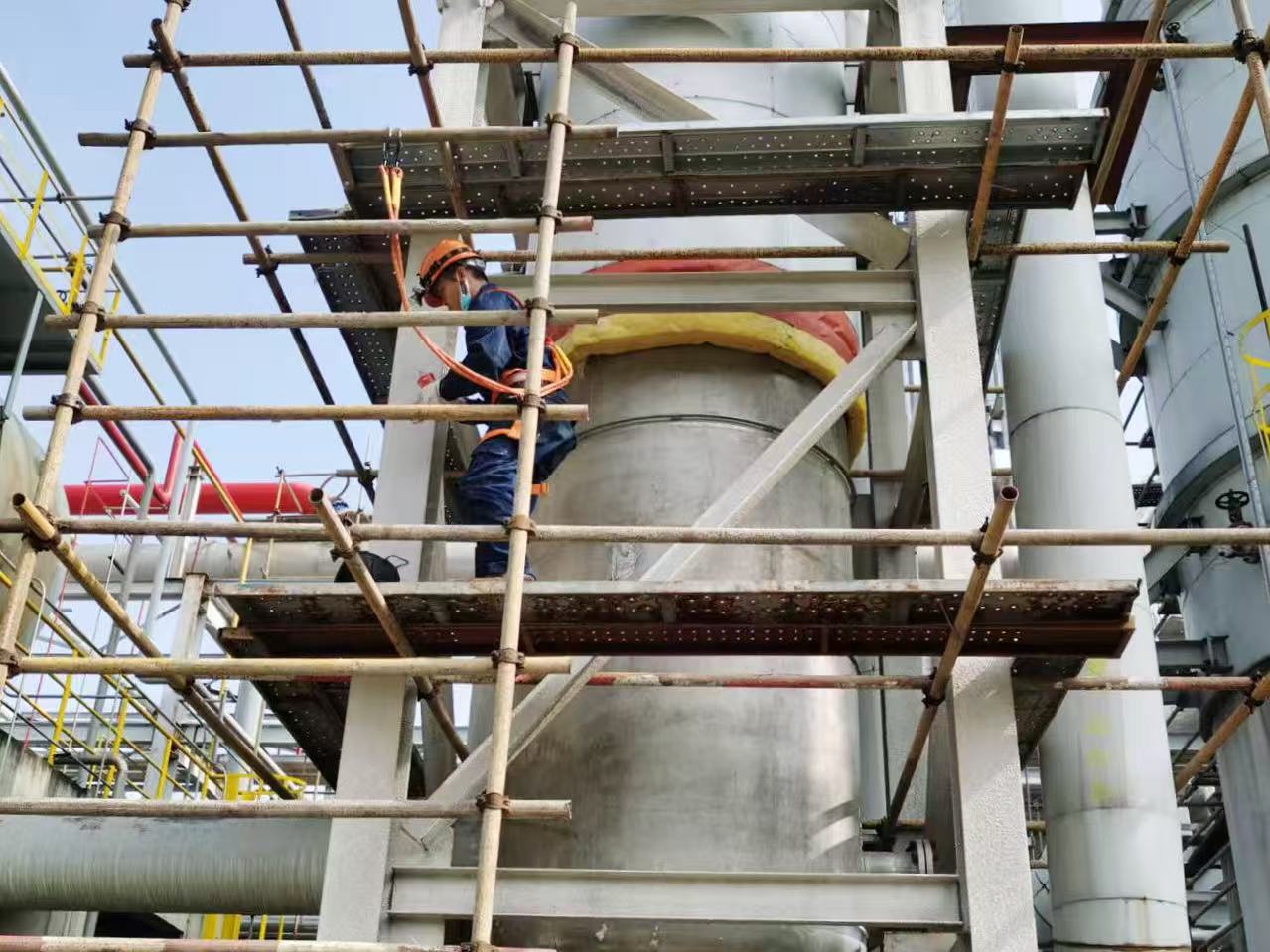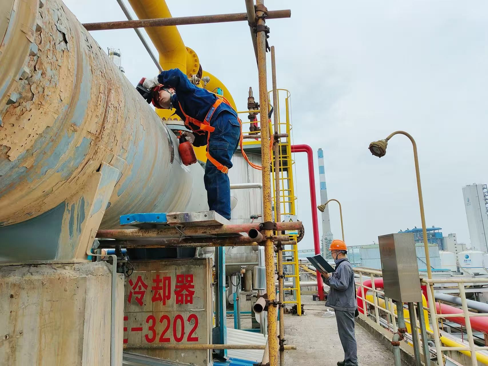 針對(duì)檢驗(yàn)中遇到的保冷容器、塔式容器、高壓管道及嚴(yán)重沖刷減薄管道等復(fù)雜工況和技術(shù)難點(diǎn),現(xiàn)場(chǎng)組織交流研討,確保檢驗(yàn)工作順利推進(jìn)。對(duì)于發(fā)現(xiàn)的安全隱患,及時(shí)反饋并指導(dǎo)企業(yè)整改,從源頭防范安全事故。