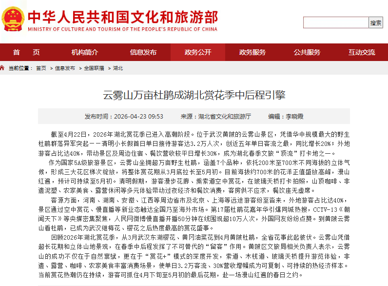 當(dāng)前賞花熱潮仍在持續(xù),游客可抓住4月下旬至5月初的最后花期,赴一場(chǎng)漫山紅遍的春日之約。