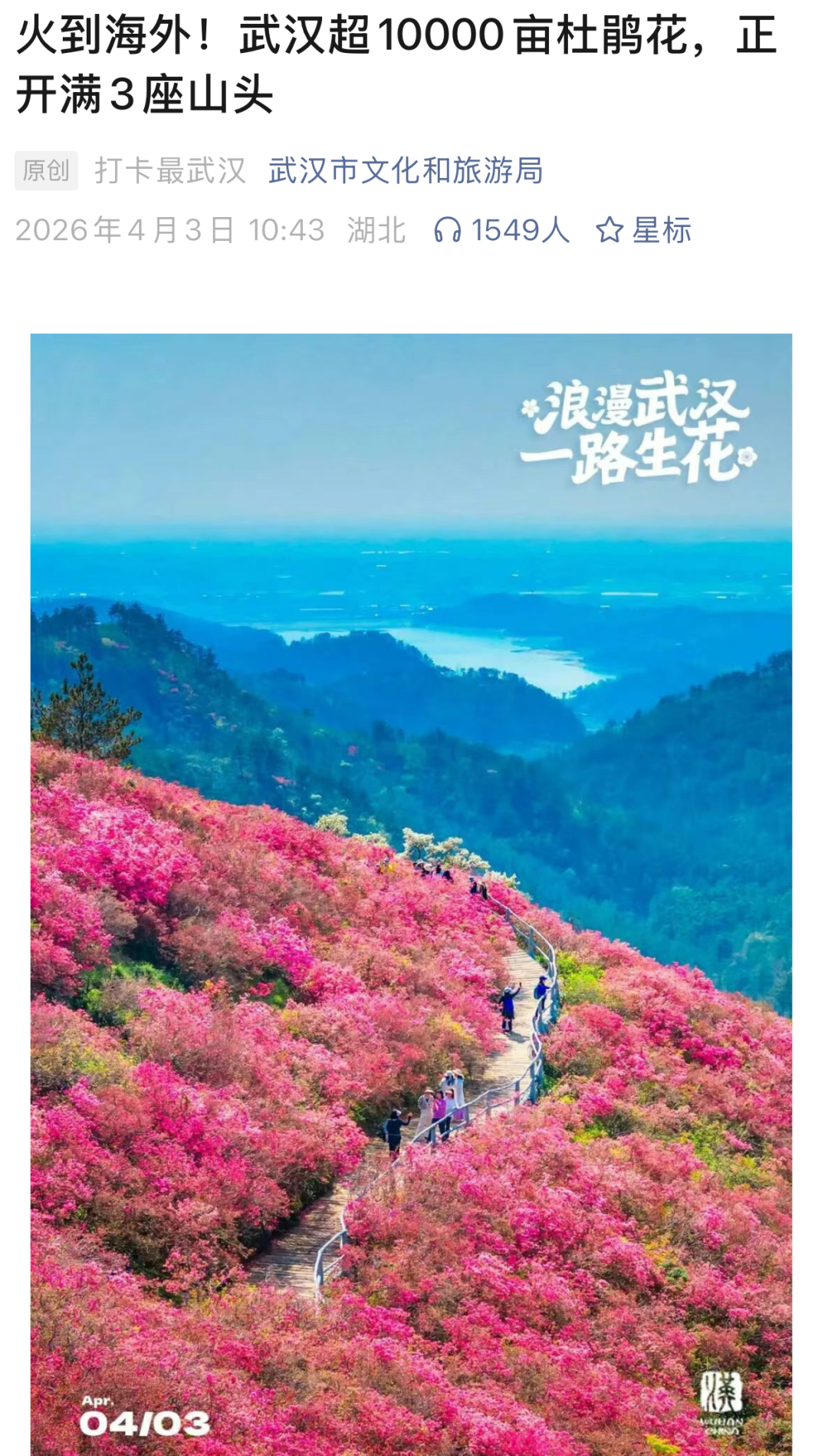 “武漢的春天是被杜鵑花染紅的吧?”社交平臺(tái)上,武漢“映山紅”大片頻頻刷屏。