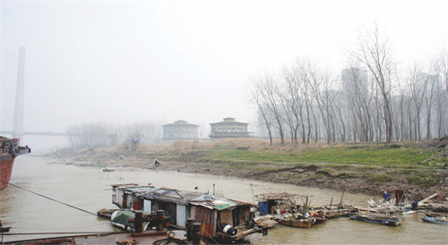余家頭水源地整治前沿江分布著大大小小的碼頭沙場。 通訊員供圖