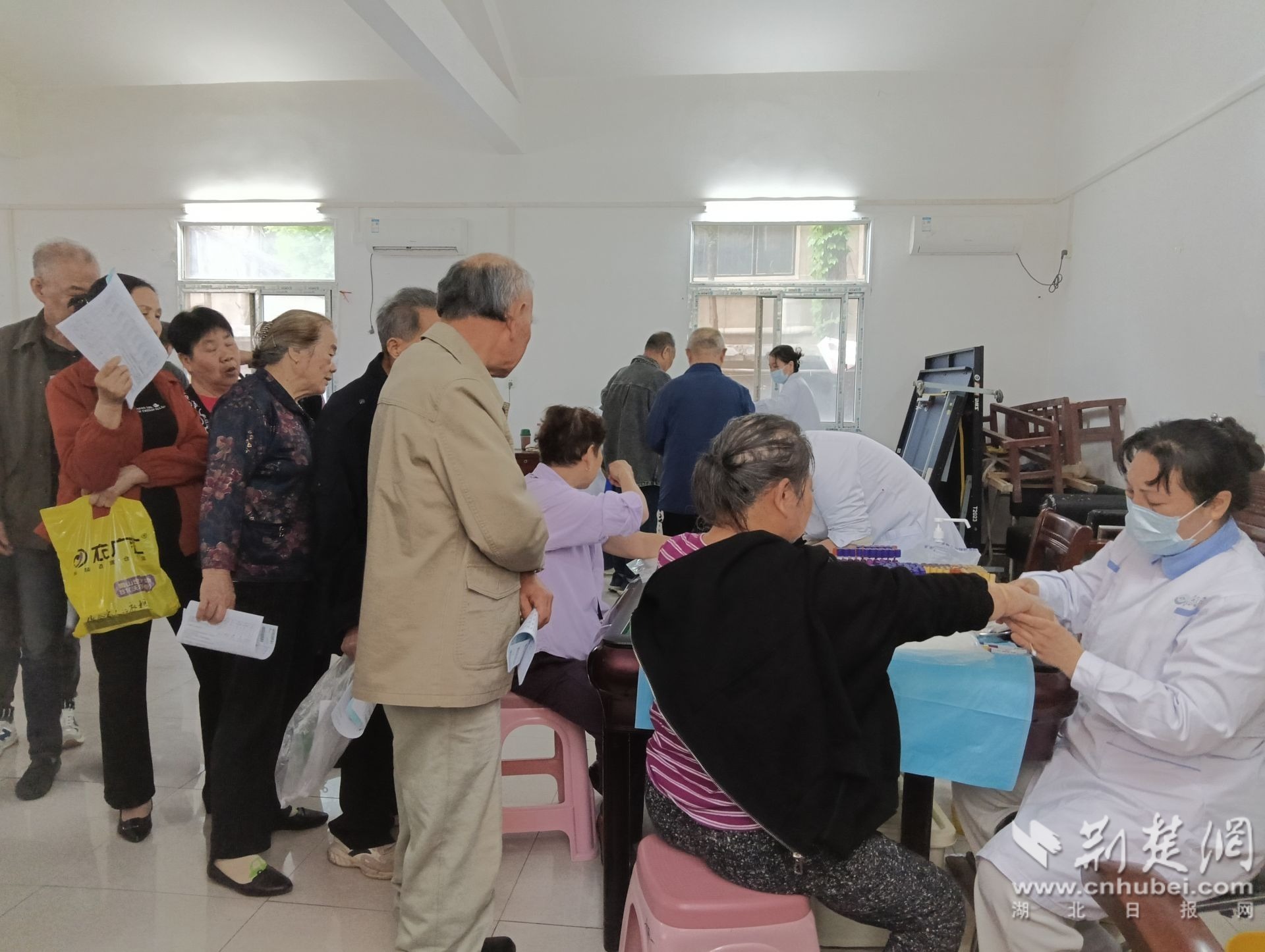 老人排隊(duì)體檢。 通訊員供圖