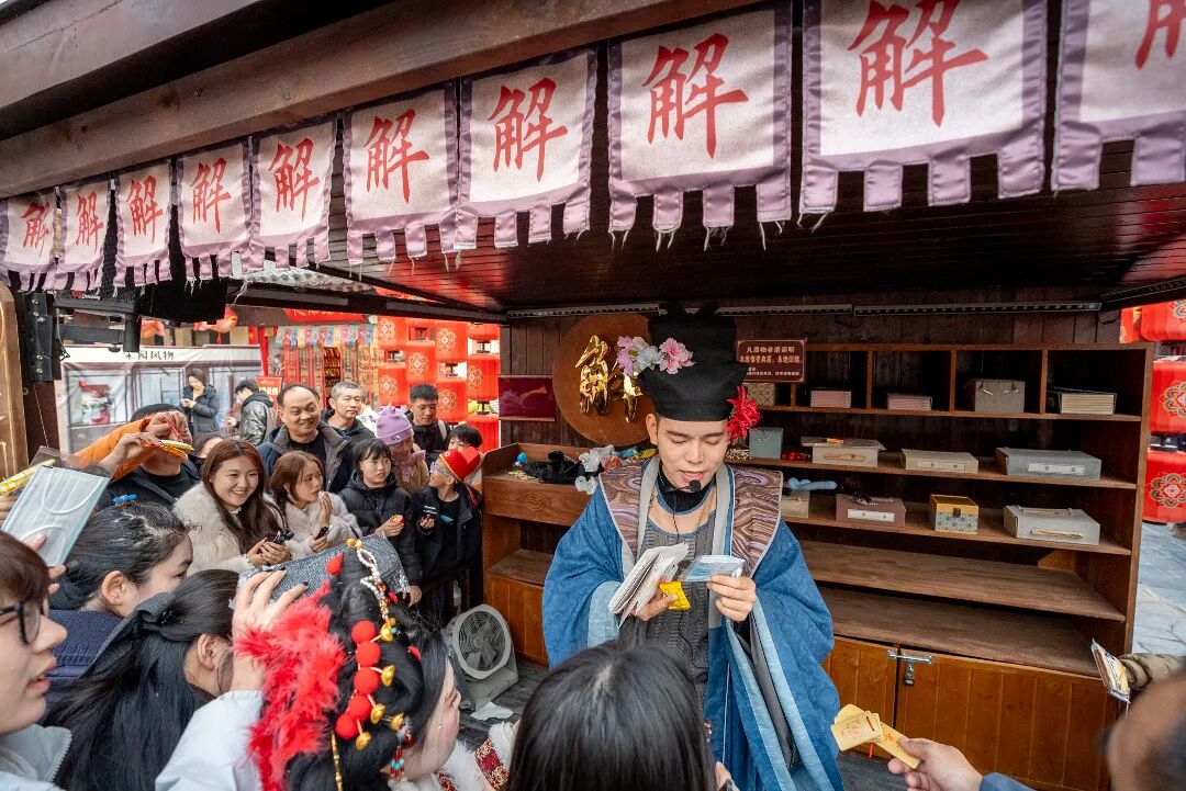 想闖進(jìn)《清明上河圖》里?神算子、眼藥酸、打更人、行腳僧……《清明上河圖》主題互動中,一個個從畫里走出來的人物,一句話便將你拽入畫中世界。
