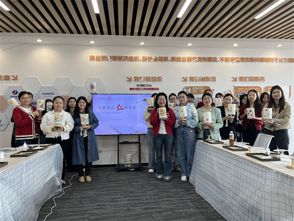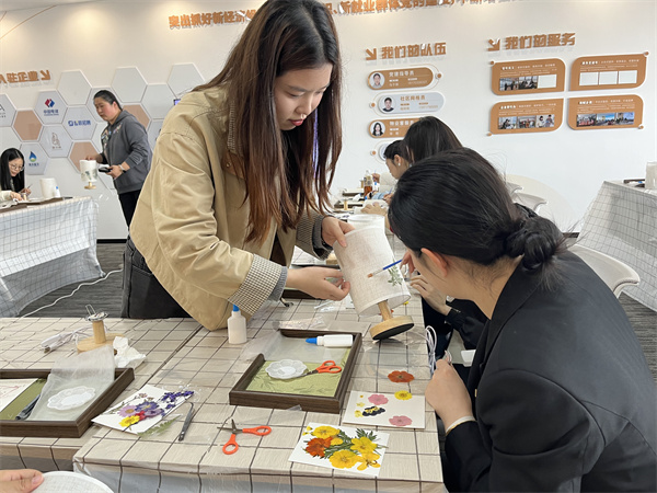 活動(dòng)現(xiàn)場(chǎng)還設(shè)置了非遺花草燈手作體驗(yàn)環(huán)節(jié)。非遺老師現(xiàn)場(chǎng)授課,帶領(lǐng)大家學(xué)習(xí)糊紙、壓花、組裝等工藝。在溫馨的氛圍中,參會(huì)人員親手制作特色燈盞,不同企業(yè)的職工在互動(dòng)中拉近了距離,進(jìn)一步凝聚了樓宇青年力量。