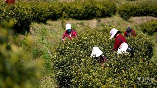 荊楚網(wǎng)(湖北日?qǐng)?bào)網(wǎng))訊(通訊員 陳祥 陳鈺)一芽一葉一抹香,一人一簍采茶忙。4月9日,湖北省蘄春縣大同鎮(zhèn)操山村黃金茶種植基地里,茶農(nóng)們正在搶摘清明節(jié)后的黃金茶,為之后的大規(guī)模炒制提供新鮮原料。