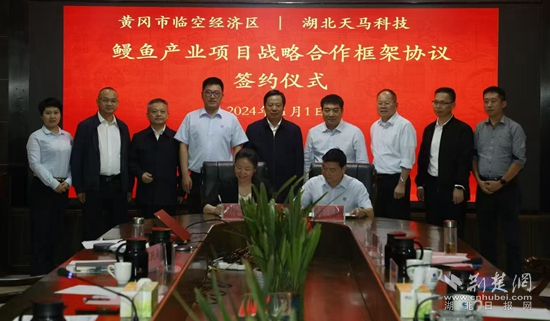 2024年11月1日,產(chǎn)業(yè)鏈領(lǐng)導(dǎo)工作小組趕赴福建與天馬科技集團(tuán)洽談合作,并順利簽訂戰(zhàn)略合作協(xié)議。根據(jù)協(xié)議,天馬科技集團(tuán)將在未來三至五年內(nèi)在黃岡繼續(xù)擴(kuò)大養(yǎng)殖規(guī)模,在現(xiàn)有基礎(chǔ)上擴(kuò)大一倍,屆時(shí)在黃岡總投資將達(dá)到20億元,養(yǎng)殖面積超過兩千畝,年產(chǎn)鰻魚兩萬噸。同時(shí),新建一家烤鰻加工廠,并積極對(duì)接花湖機(jī)場(chǎng),讓活鰻直接上飛機(jī)出口。