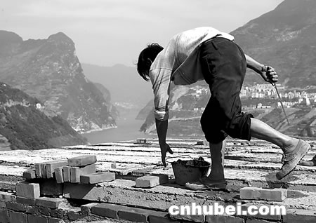 (圖1)西陵峽兵書寶劍峽口,村民正忙著蓋新樓房。 (圖2)一名兒童在已拆得面目全非的房屋前玩耍。 (圖3)奉節(jié)老城開濟門城墻如今只剩殘垣斷壁。 (圖4)祖孫倆坐在云陽老縣城二期水位標牌前。 (圖5)奉節(jié)縣居民在新縣城百米速寫畫墻上覓舊城蹤影。 (圖6)萬州老城最繁華的勝利街只留下了指示路牌。 ______________________________________________________