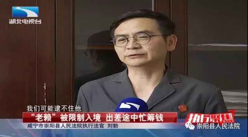 崇陽(yáng)縣法院執(zhí)行法官劉勃:“法院現(xiàn)在對(duì)失信被執(zhí)行人有個(gè)措施,就是限制出入境,我就跟他講,我說(shuō)你回不來(lái)了?!?/p>